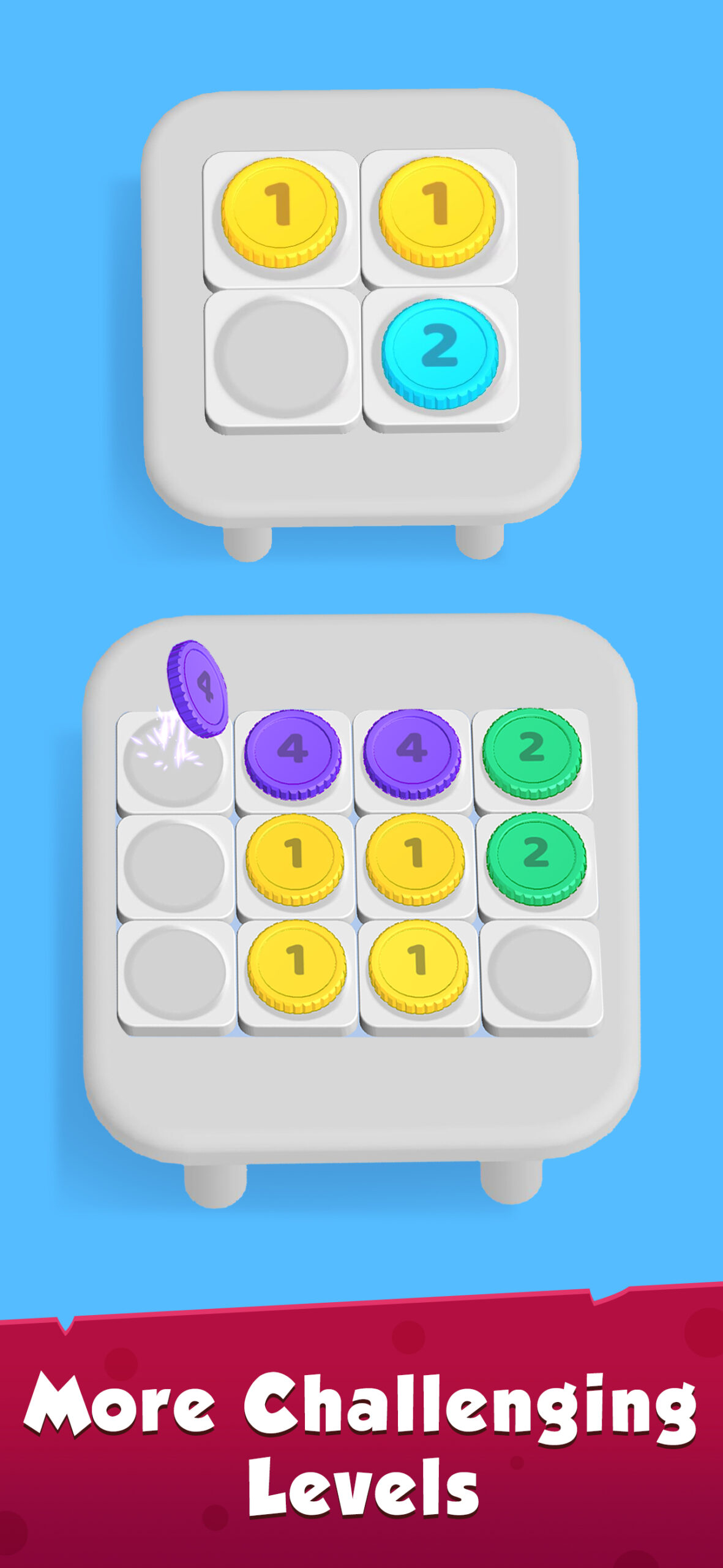 In Coin Puzzle – Swipe and Merge, players embark on a thrilling journey of merging coins to achieve higher values. With simple and intuitive swipe controls, combine identical coins to create more valuable ones as you strategize to reach the target coin within a set number of moves. This engaging and strategic merging challenge ensures an exciting gameplay experience that keeps you coming back for more!