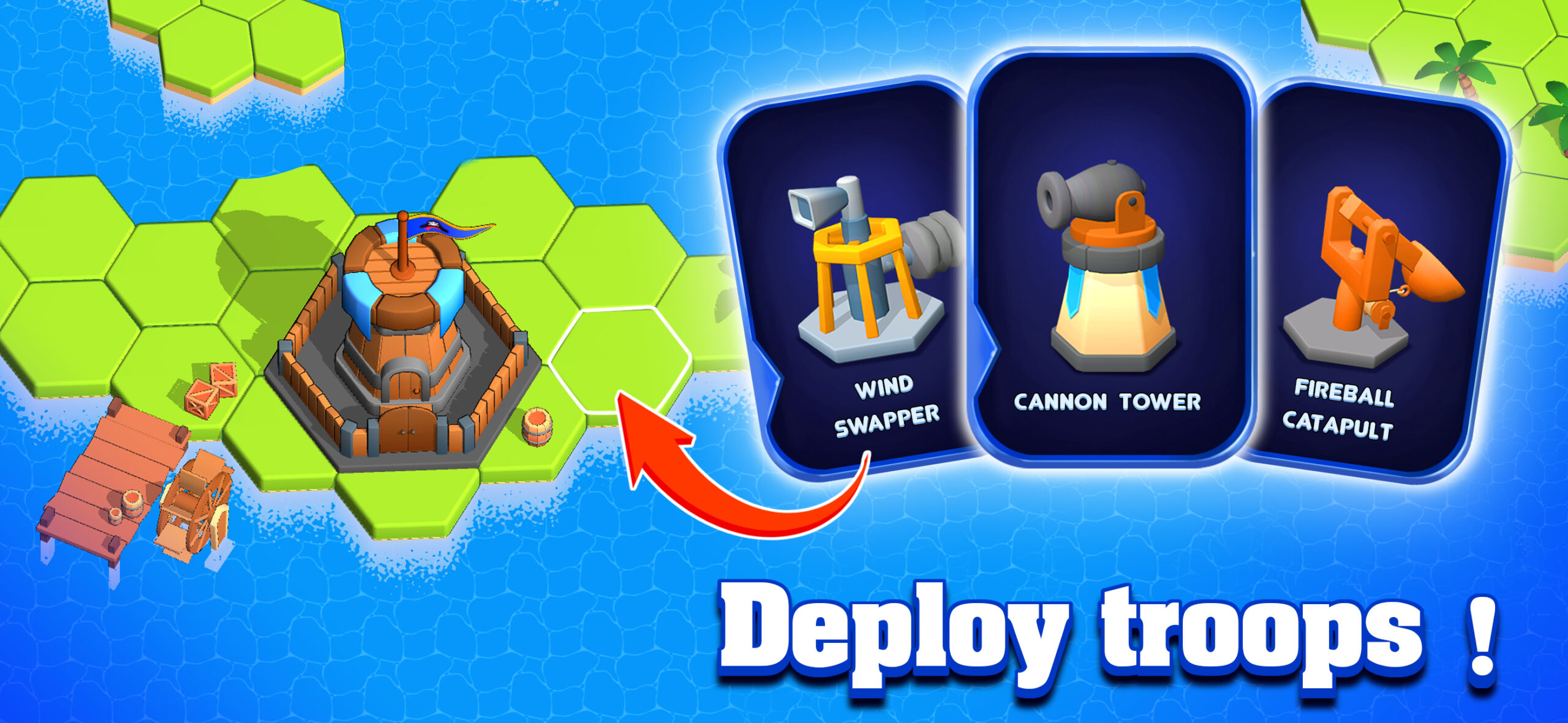 In Island Rumble: Tower Defense, defend your island by strategically placing towers and troops. Use simple tap-and-drag controls to position your defenses, fight off waves of pirates and sea monsters, and upgrade your base to withstand increasingly tough challenges.
