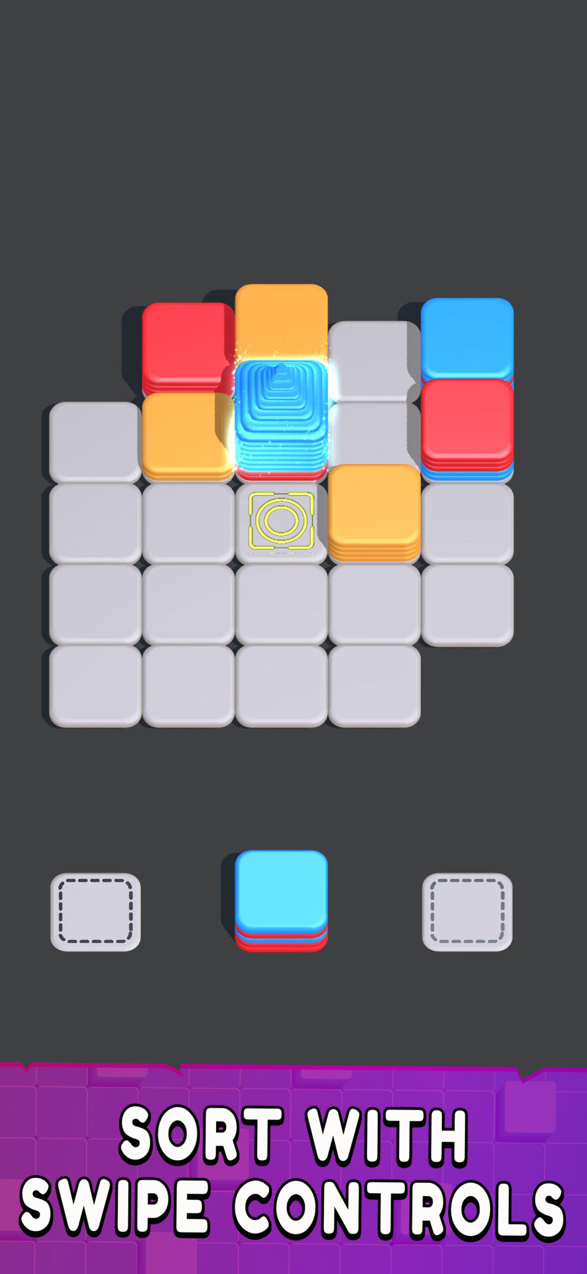 Intuitive swipe controls let you easily shift entire rows or columns to match and clear colorful stacks.