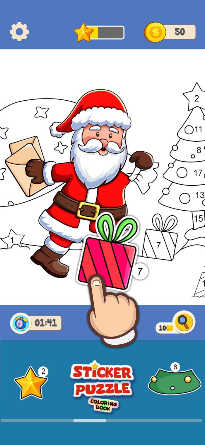 Solve puzzles by matching numbers and dragging stickers to their perfect spots. Use simple touchscreen controls to bring each scene to life with vibrant colors and precise placement. Challenge your skills and enjoy the creative fun of completing each beautiful image in the Sticker Puzzle – Coloring Book!