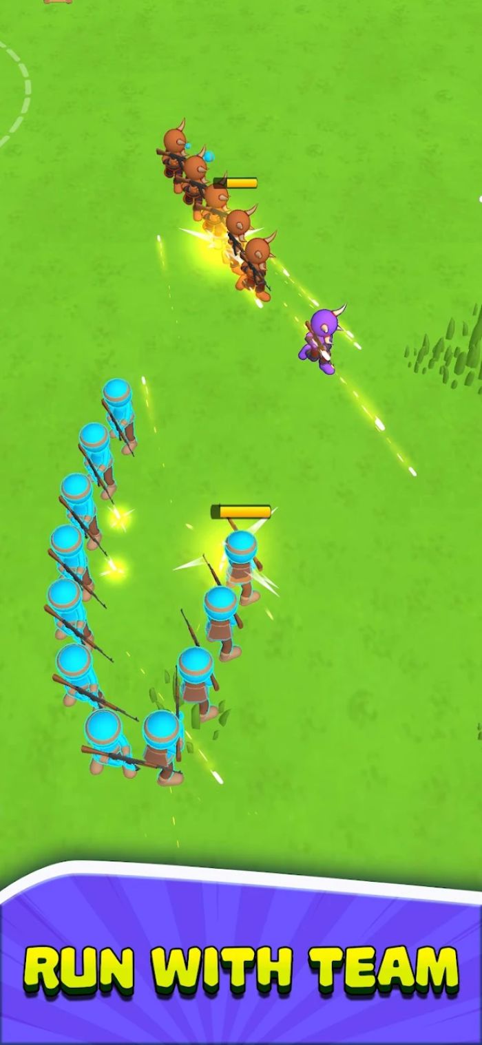 Players gather an entourage of armed companions, creating a powerful snake-like trail that adds a strategic layer to the gameplay.
